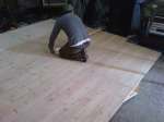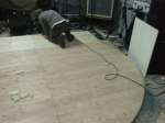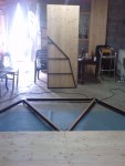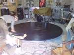 Un plancher rond de 3 mètres de diamètre posé sur une structure métal montée sur platine (hauteur maximale 18cm). La structure métal a été soudée par les Ateliers « Chevalier et fils » la Roche des Arnauds 05.