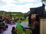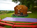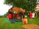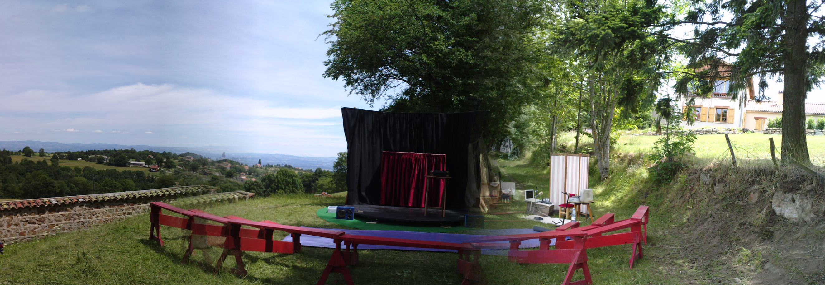Les 11 et 12 juin ce fut, donc, la première sortie de l’Écrin pour le festival « Les monts de la balle » à Verrières en Forez. Le festival, nous avait mis à disposition un lieu un peu en retrait du centre « festif ». Un lieu ou l’on dominait les monts du forez et la vallée de Montbrison, un écrin de verdure pour un écrin de théatre.